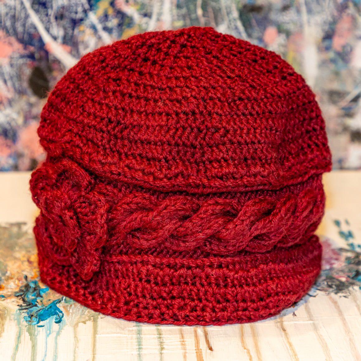 Handprjónaðar/heklaðar úr ullargarni., hlýjar og góðar. Húfurnar þarf að handþvo en það er afar auðvelt og fljótlegt að setja þær svo á ofninn og þurrka.